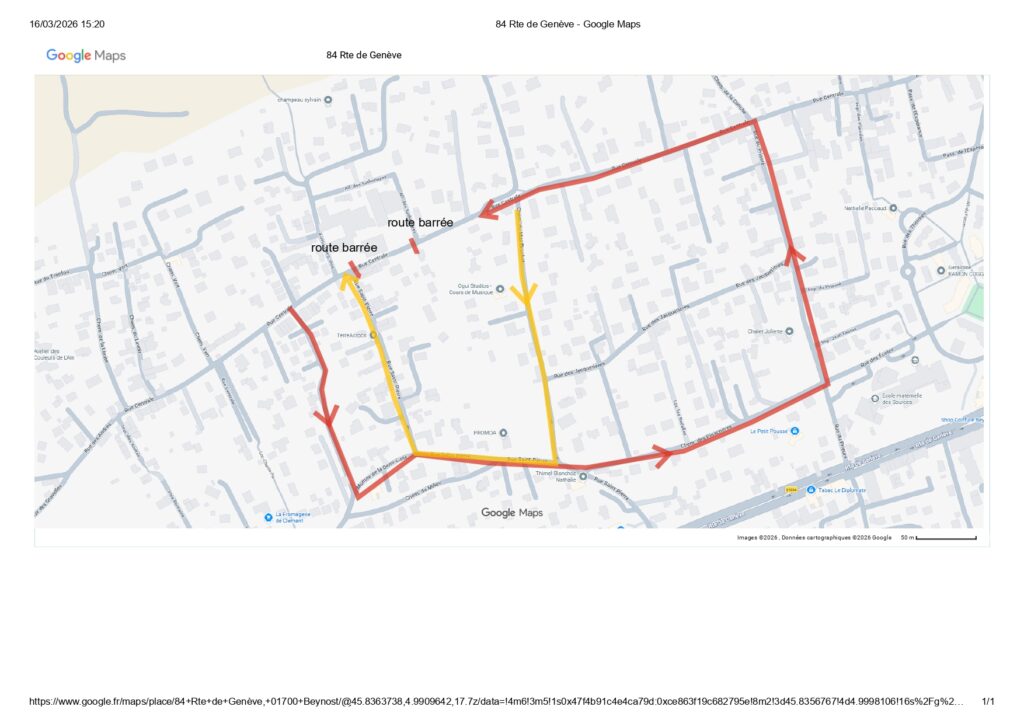 Entre la rue Saint-Pierre et le chemin des Sathonayes, la circulation sera fermée pour l’ensemble des usagers à compter du 27/04/2026 (durée minimum de 15 jours).