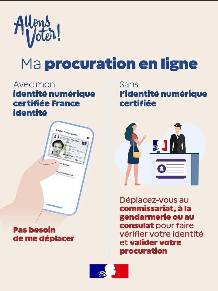 Si vous n’avez pas internet, vous avez la possibilité de faire une procuration sur place avec feuillet papier, il faudra :